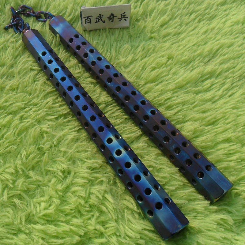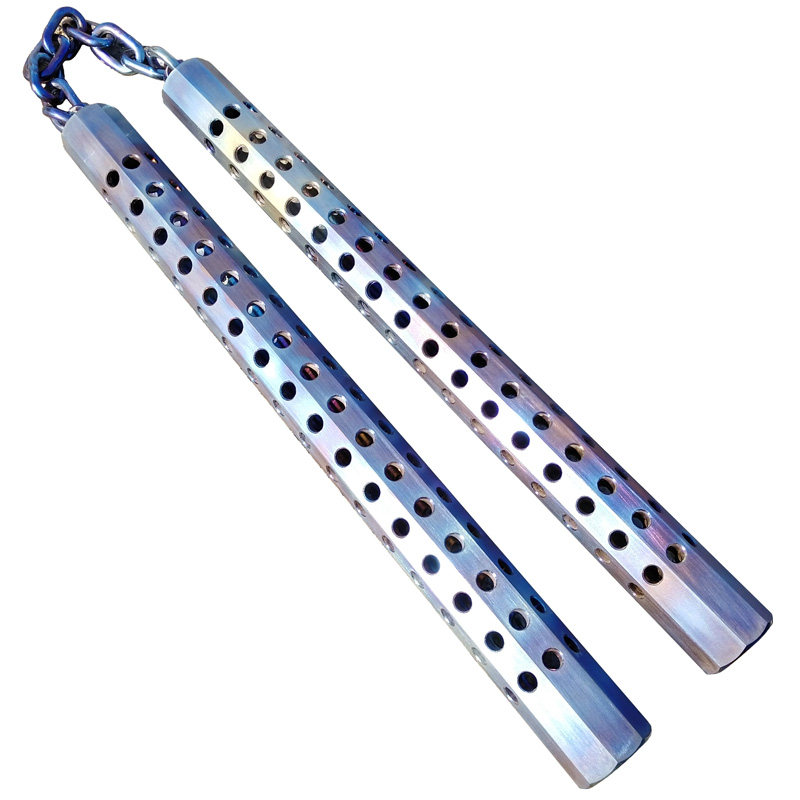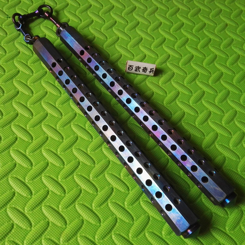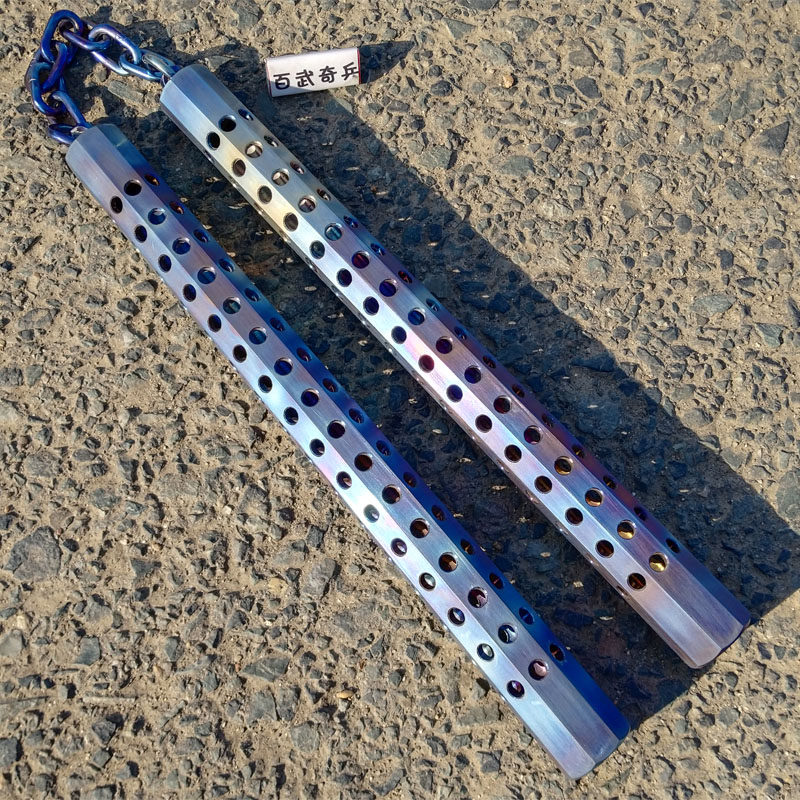 Hundred Wu Qibing-Titanium alloy octagonal nunchaku hand-burned color TC4 titanium chain nunchaku actual combat custom collection
