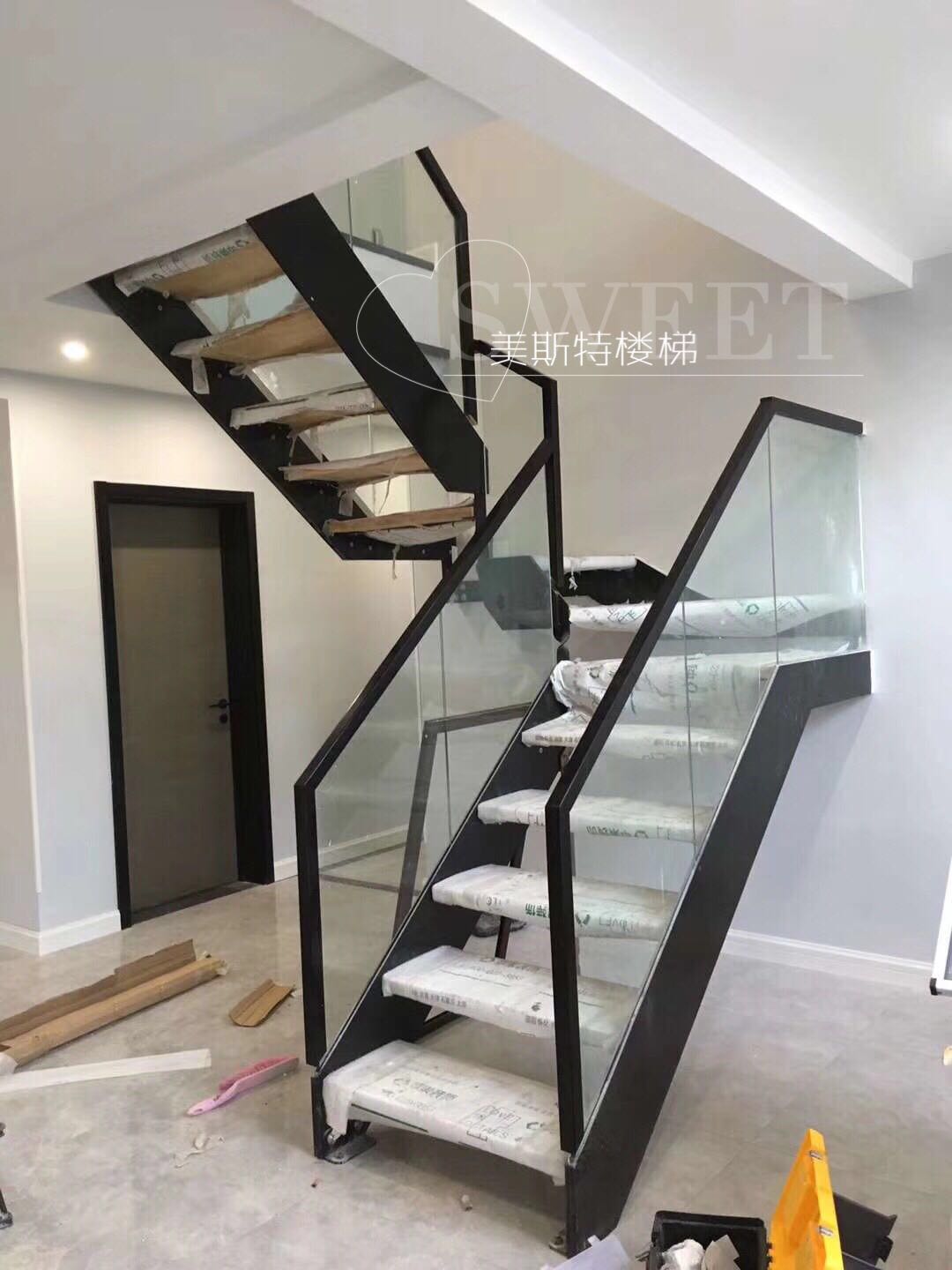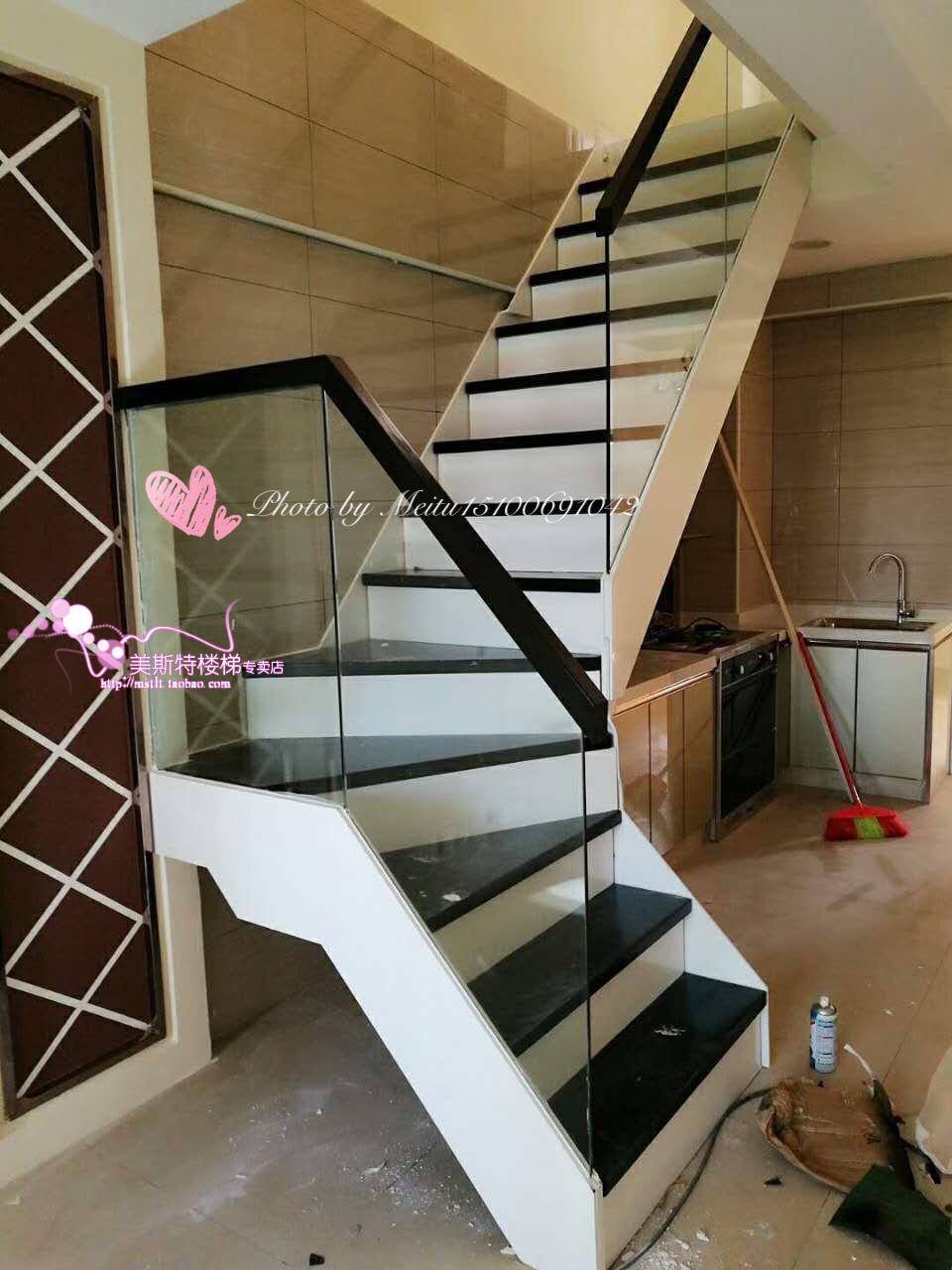 Glass stairs Duplex attic stairs Home stairs Tempered glass double beam strong indoor stairs Custom