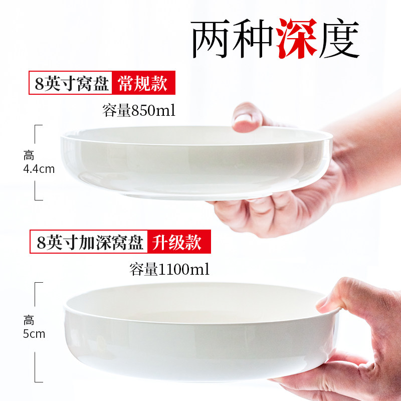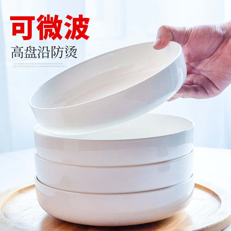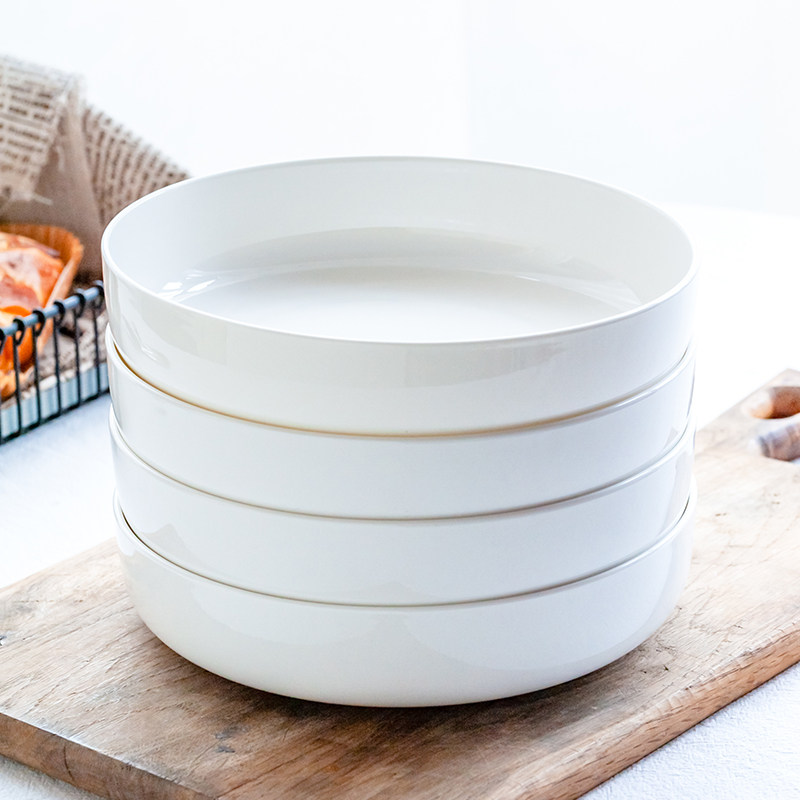 Pure white bone porcelain plate dish household creative ceramic tableware Nordic round stir-fried soup plate salad deep plate nest plate
