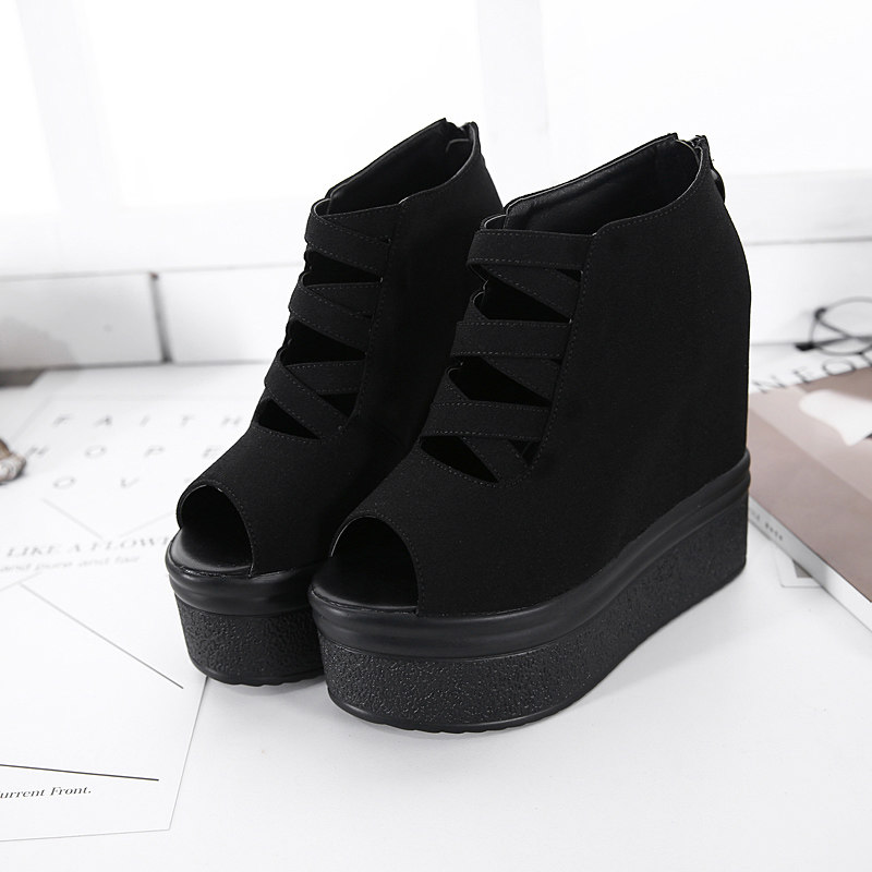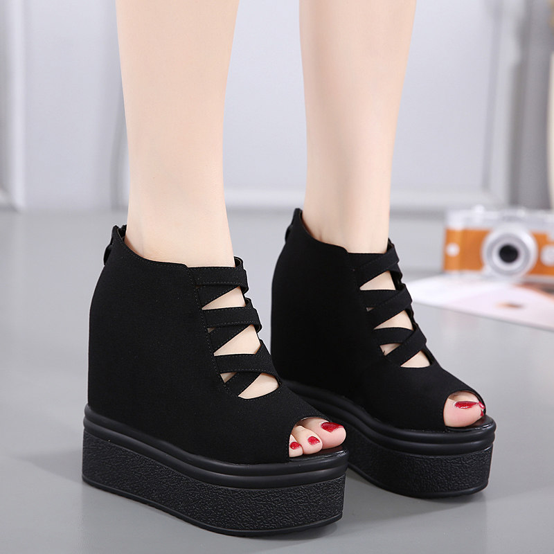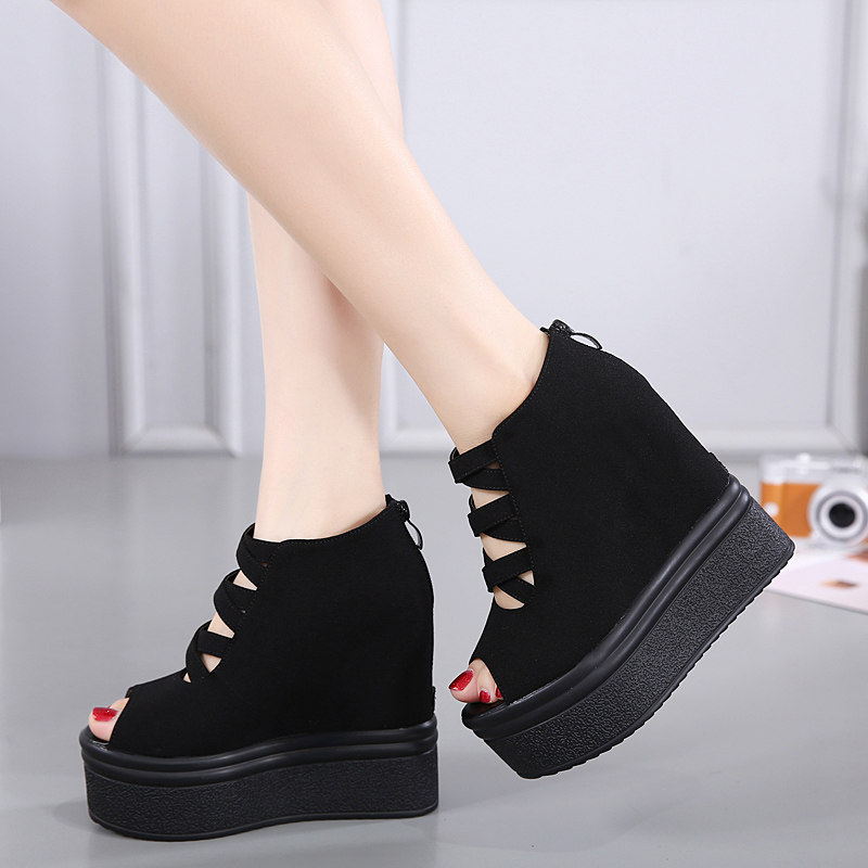 2022 spring autumn ultra high heel wedge sandal sandal women 14cm pine cake thick bottom waterproof bench inside heightening Roman fish stomp shoes single