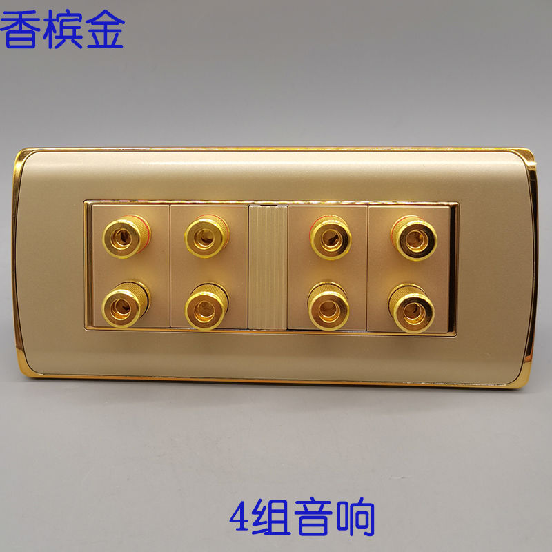 Champagne Gold 118 Type 4 Assembled Convex Head 5 1 Audio Sound 4 Groups 8 Holes Banana Head Wall Socket Switch Panel