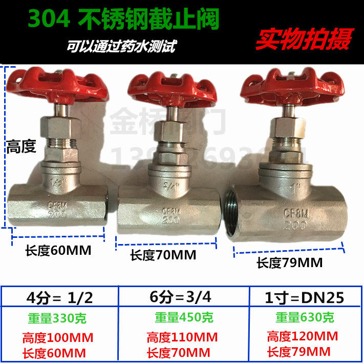 304 stainless steel stop valve gate valve thread high temperature resistant steam valve 4 points 6 points 1 inch DN15 20 25 40