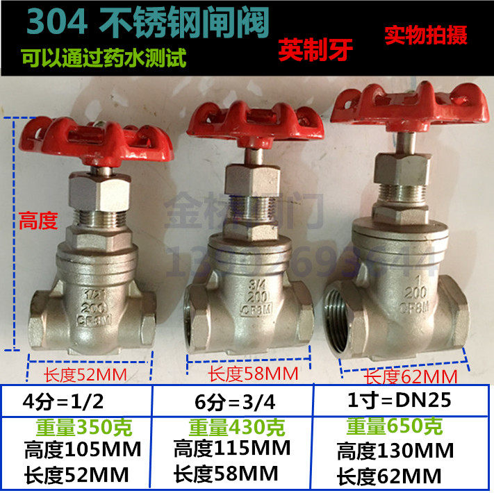 DN15 gate valve (304 material) DN20 gate valve (304 material) DN25 gate valve (304 material) DN32 gate valve (304 material) DN40 gate valve (3
