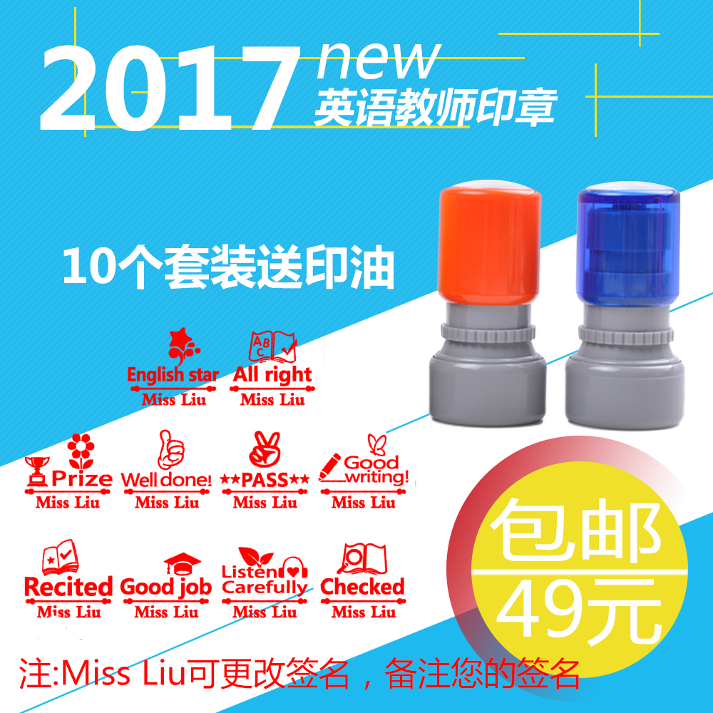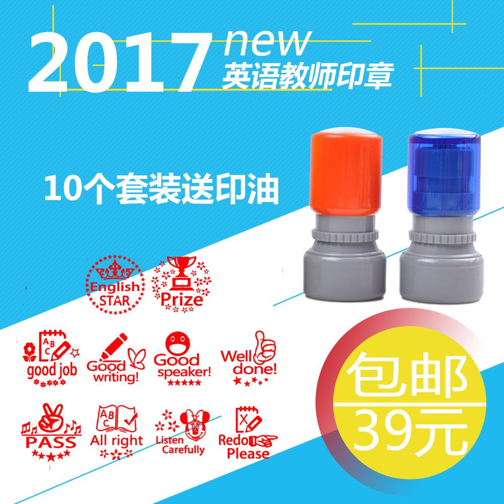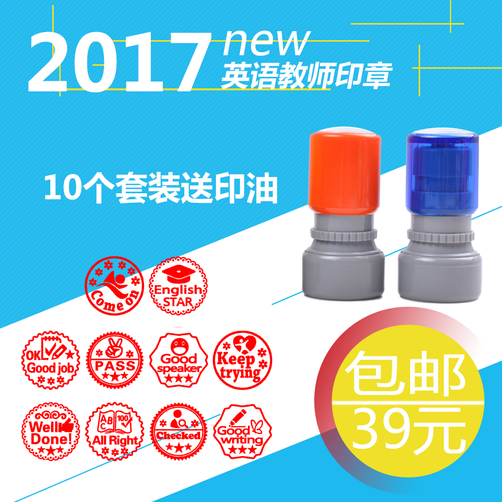 English teacher seal production Teacher grading homework Children's cute cartoon reward encouragement praise chapter