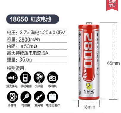 Forest Tiger 18650 Lithium Battery 3 7V Bright Light Flashlight 26650 Charged Red Skin Battery Original Accessories