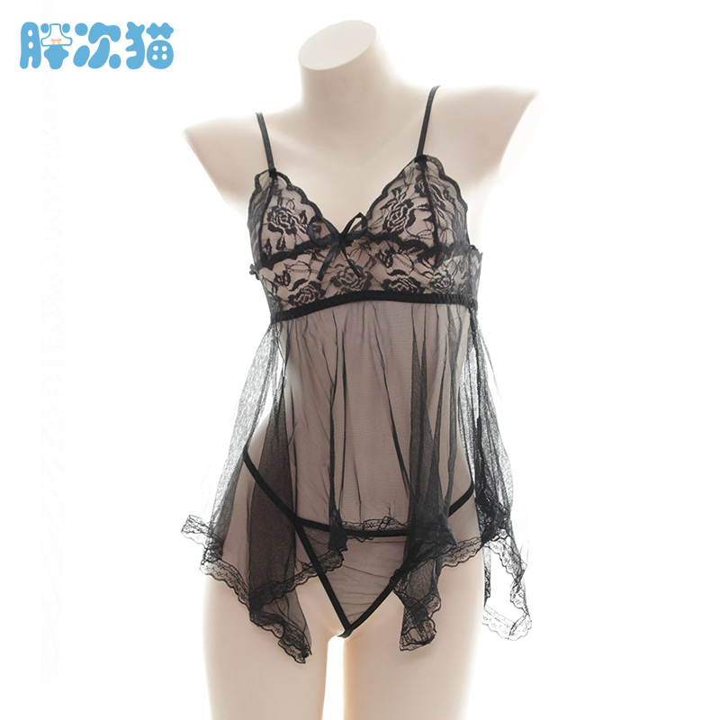 (Produced by the Han) Oh my God, it's so sexy ~ transparent tulle sexy nightgown lace pajamas with underwear