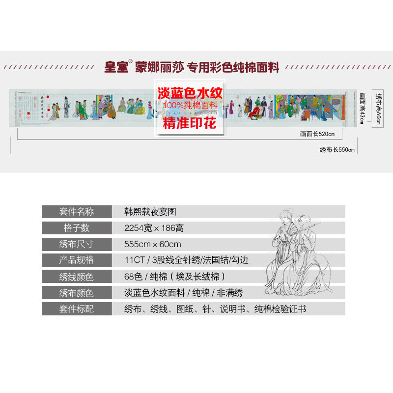 Royal Mona Lisa printed cross embroidered China's top paintings and women painting Han Xi-borne Night Feast Tuan All-picture Panorama