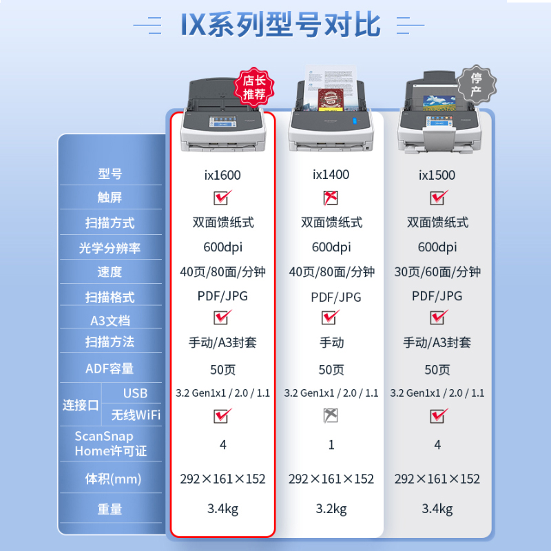 IX1400 40 sheets per minute 80 ix1600 (40 sheets per minute with touch screen with WIFI) Fi-7140(40 pages, 80 sheets per minute