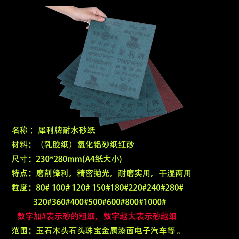 Authentic Rhinoceros Rhinoceros Water Sandpaper Static Plant Water Resistant Sand Paper Sand Leather Polished Sandpaper Wall Polished Sandpaper