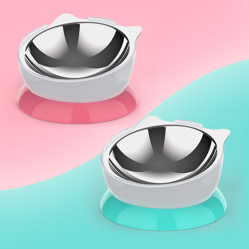 Pet bowl high-footed cat bowl stainless steel anti-black chin oblique bowl cervical vertebra cat bowl pink cyan with export