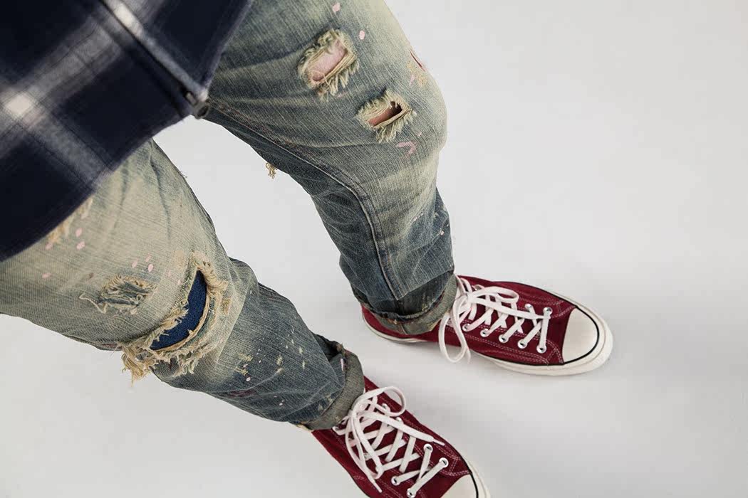 Publish Demin series Rex old Snyder patch patch destroy splash ink jeans spot