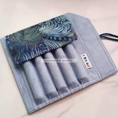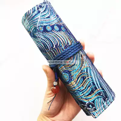 A New Blue Peacock brocade National Tide pen Chinese style pen curtain ancient style embroidery roll pen bag