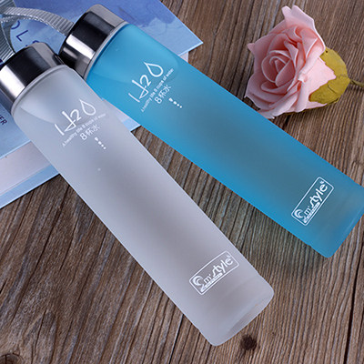 Creative colorful straight body cup stick cup portable leak-proof frosted plastic cup student sports accompanying handle water cup