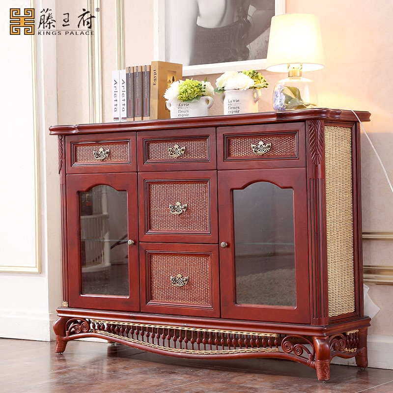 Storage cabinet storage cabinet Chinese dining table rectangular light luxury dining chair dining cabinet dining table home 6 people natural rattan chair