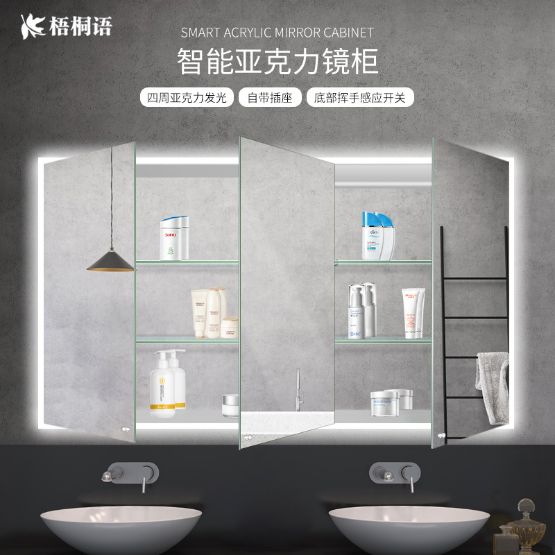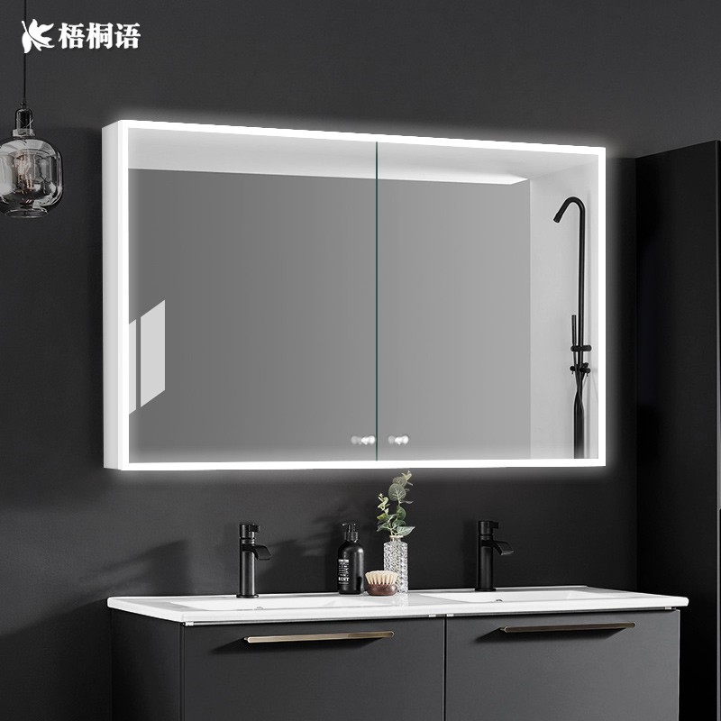 Mirror cabinet Smart mirror cabinet Single socket Powder room mirror with shelf Space aluminum bathroom mirror cabinet Wall-mounted