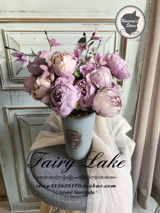 Light purple の first dream Original pink and purple peony and peony thirteen heads simulation bouquet Wedding wedding room decoration