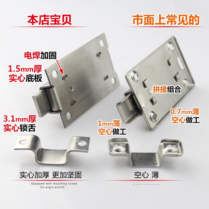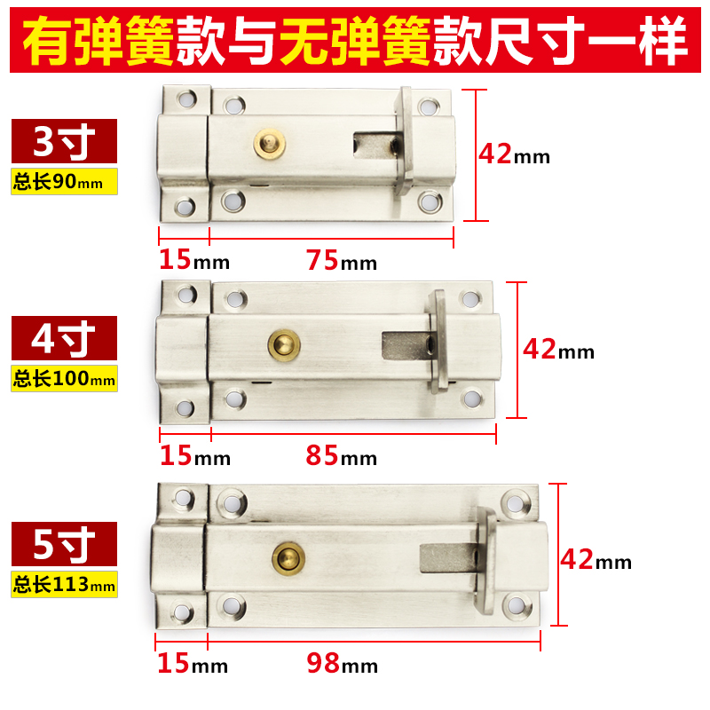Stainless steel automatic spring plug-in lock-button lock-button room door button door-thread anti-theft wooden door door thickness pin