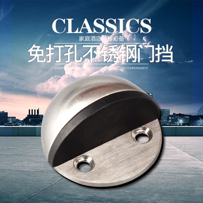 Stainless steel perforation-free door bump door block ground suction door block turtle top rubber anti-collision glass door block door hit wall suction