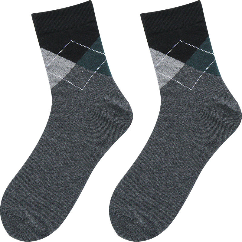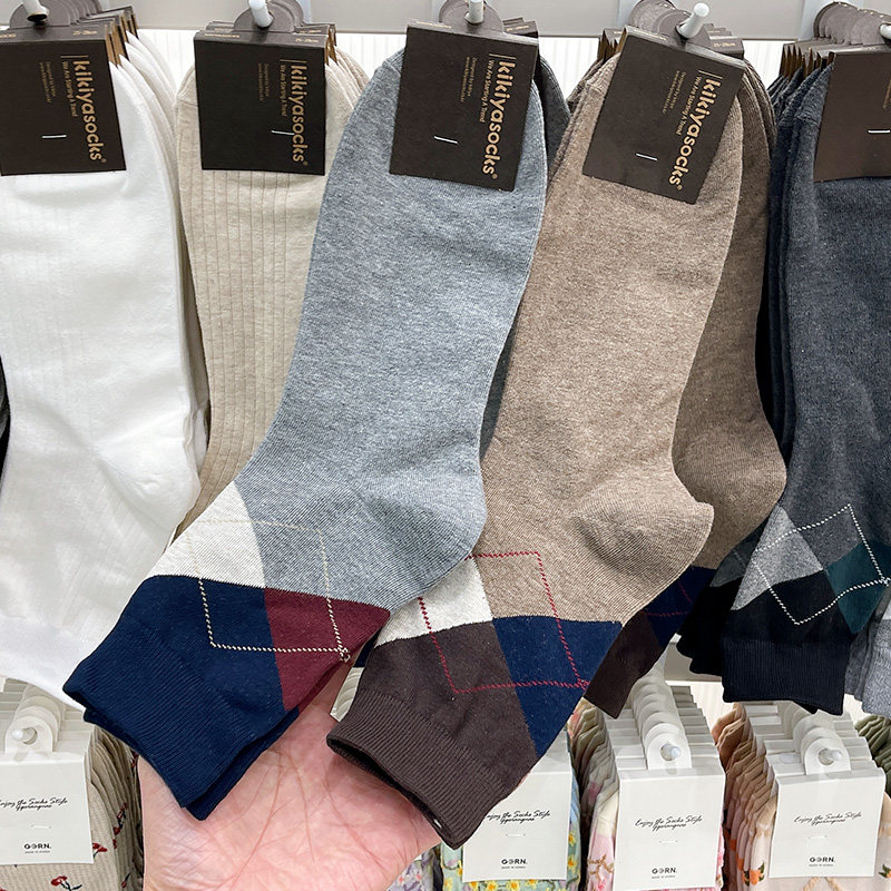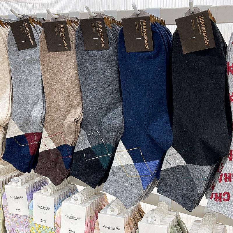 South Korea Imported Men's Panes Rhomboid Short Socks Spring Autumn Basis Yinglun Wind East gate Breathable Midcylinder Cotton Socks