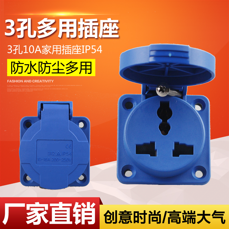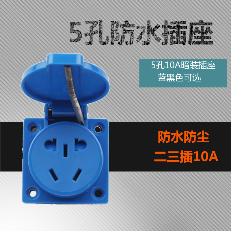 Outdoor waterproof socket 5 holes 10A Outdoor waterproof socket 5 holes Civil 23 plugged European-style industrial socket concealed