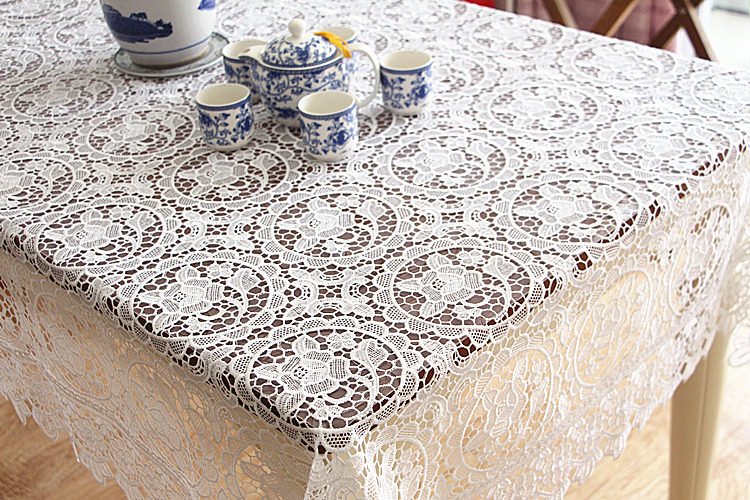 Rose water-soluble lace table cloth Solid color full work coffee table cloth Hollow tablecloth foreign trade white beige piano cover cloth
