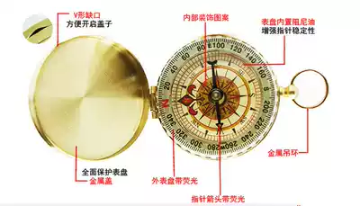 Fine copper flap G50 luminous gold-plated outdoor directional multifunctional compass keychain pocket watch finger north-south needle