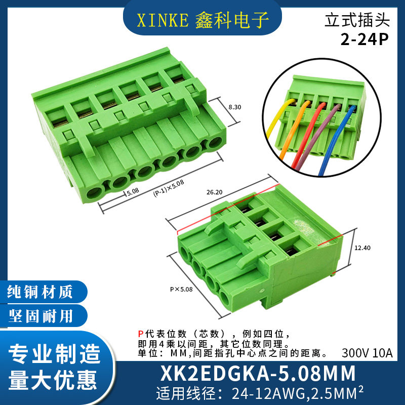 Plug-in-type PCB wiring terminal XK2EDGKA-5 08MM side vertical wiring plug female head 2EDG5 08-Taobao
