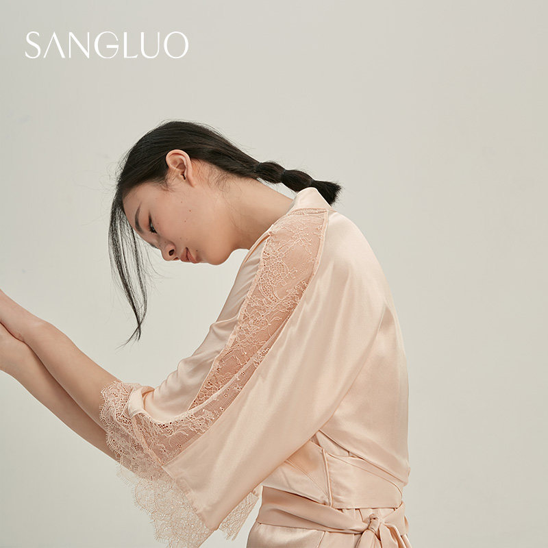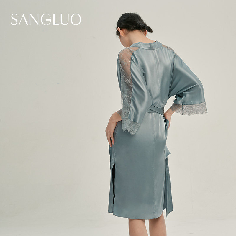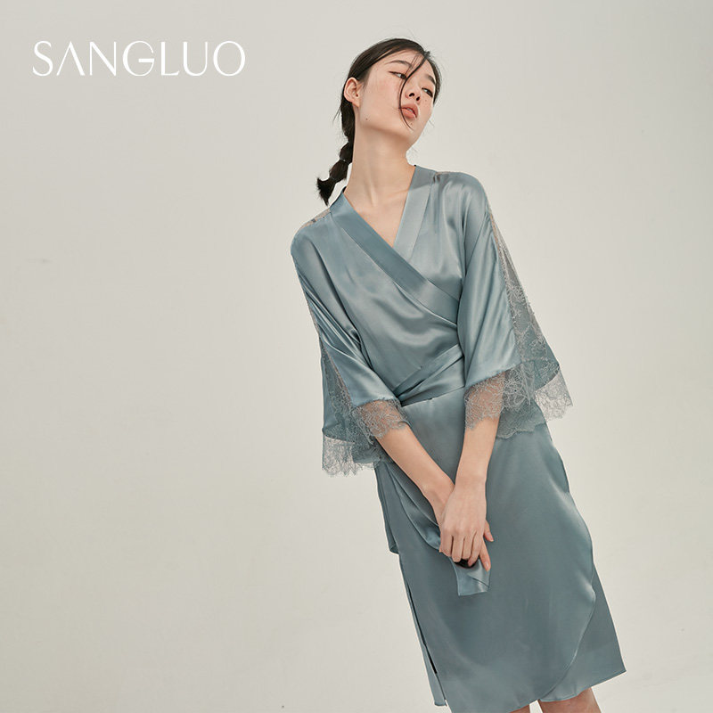 Silk nightgown lazy sexy robe SANGLUO SANGLUO mulberry silk lace elegant bride wedding morning gown