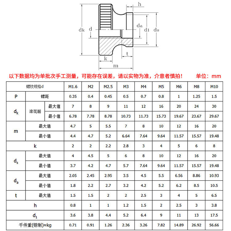 304 stainless steel high head knurled nut GB806 hand screw double step adjustment round nut 3M4M5M6M8M10