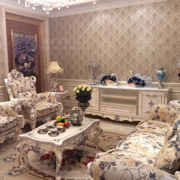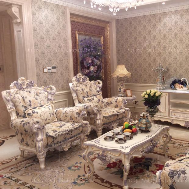 Italian sofa European style solid wood sofa combination living room carved high-end fabric sofa French court sofa
