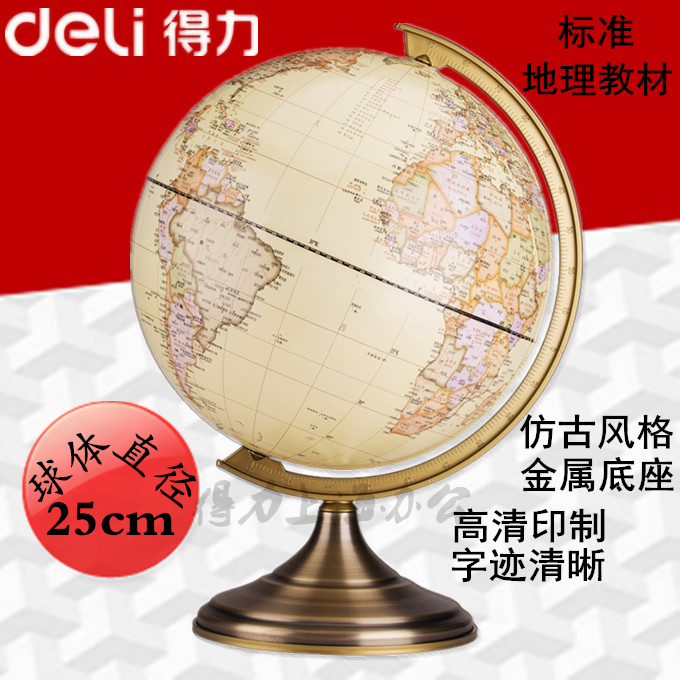 Deli 2178 globe 25cm students with high-definition medium globe retro style living room children's study ornaments
