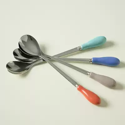 Creative stainless steel spoon thickened ceramic head color stirring spoon cute metal spoon Korean spoon teaspoon