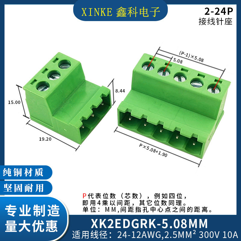 Manufacturer direct marketing plug-free butt joint male head socket XK2EDGRK-5 08 2EDG-5 08 copper environmentally friendly-Taobao