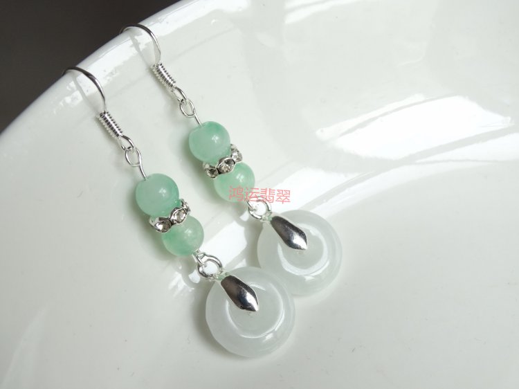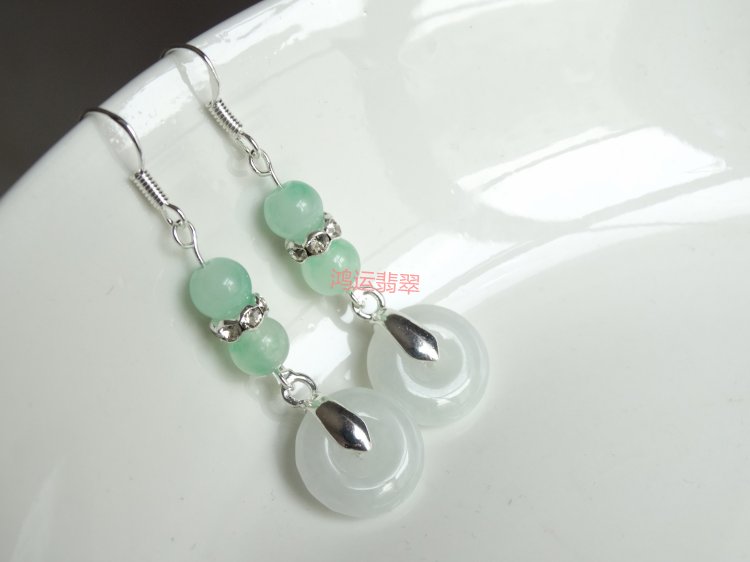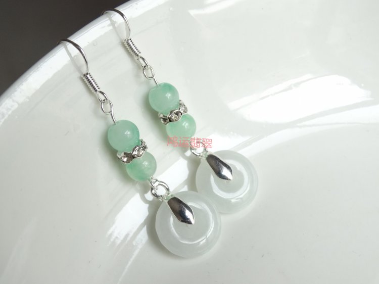 The beauty of ancient rhyme natural jadeite A cargo transfer prosperous career Qingrun Ping'an buckle jade earrings 925 sterling silver non-allergic