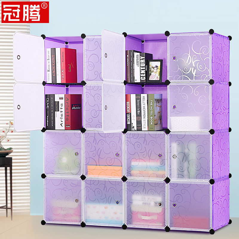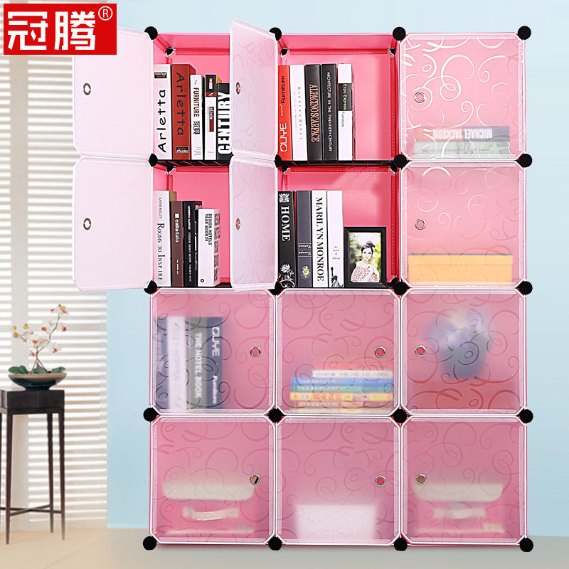 Guan Teng bookshelf Free combination storage assembly storage storage layer shelf Simple modern plastic simple bookcase with door