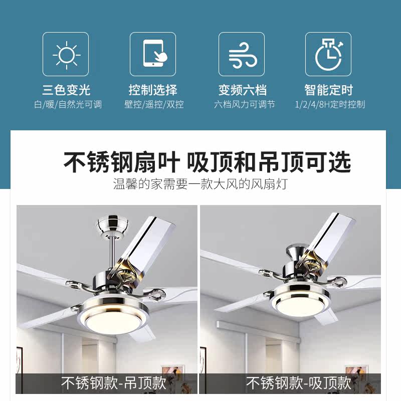 Winter super-royalist stainless steel home bedroom ceiling fan lamp modern minimalist live fan lamp Living room dining room Frequency Conversion Ceiling Fan Lamp
