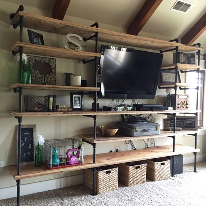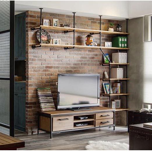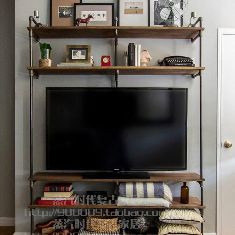 loft retro American plumbing wall Shelves Iron Art Solid Wood Bookcase shelf TV Background Wall Decorative Shelf