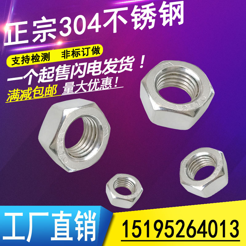 304 Stainless steel nut Hexagonal nut Screw cap M3M4M5M6M8M10M12M14M16M18M20M24
