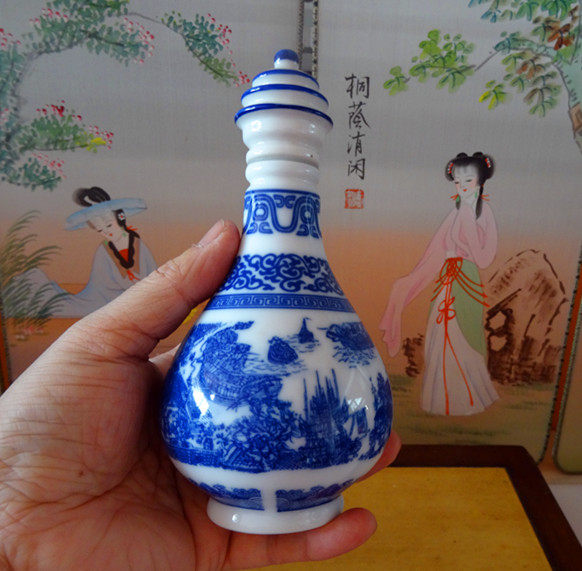Hot selling wine bottle wine version vase collection of green flower porcelain small wine bottle Qingming Upper river real photo beautiful items intact