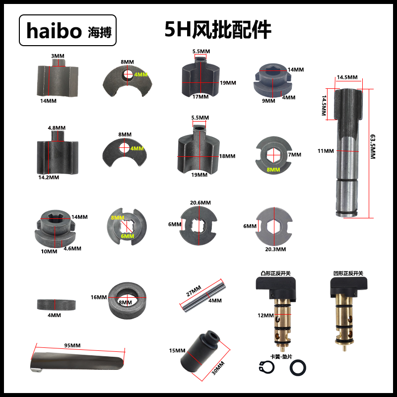 17MM percussion block (5H) 19MM percussion block (5H) 5H cam (four corners) 5H cam (hexagonal) 5H spacer 5H bolt 22 5MM percussion block (8H) 8