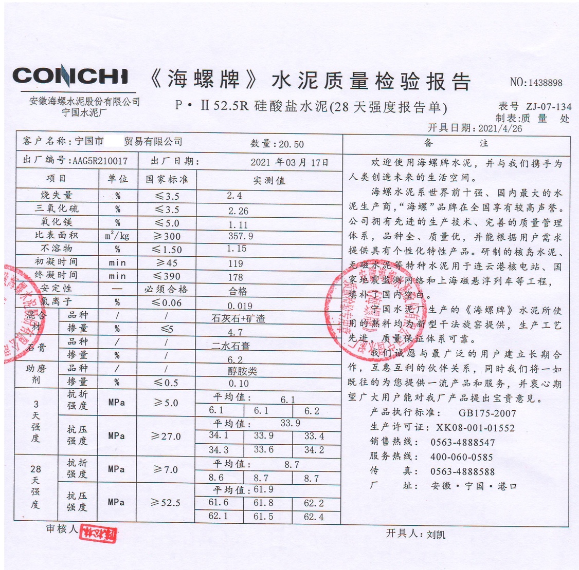 Conch cement Portland cement PII.52.5R (non-625 cement) high-strength experiment special