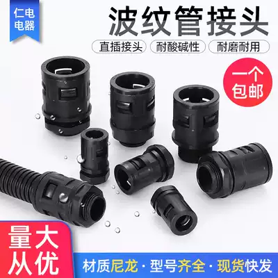 Plastic bellows connector nylon hose in-line plug type quick external thread black bellows fixing buckle joint