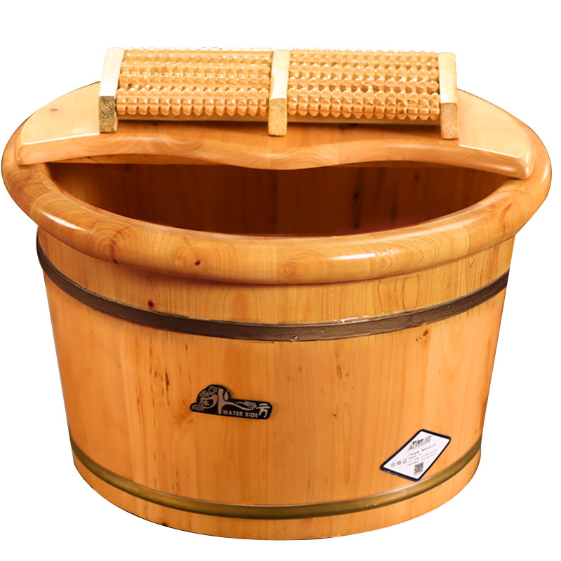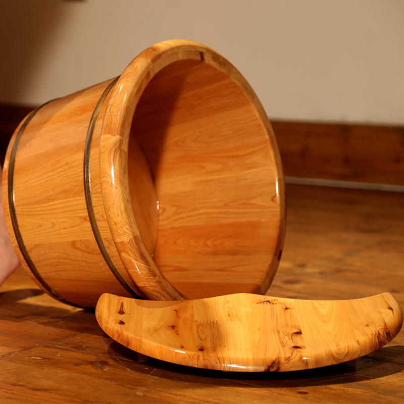 Cedar wood foot bath bucket Foot bath bucket Solid wood foot wash basin Female small wooden bucket with lid Foot bath bucket Wooden household artifact