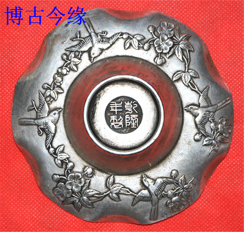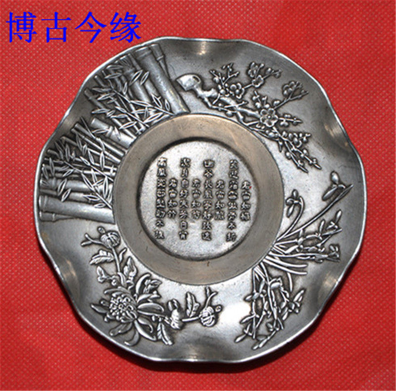 Antique collection copper plate pure white copper gilt silver small plate plum orchid bamboo chrysanthemum tribute white copper silver-plated plate