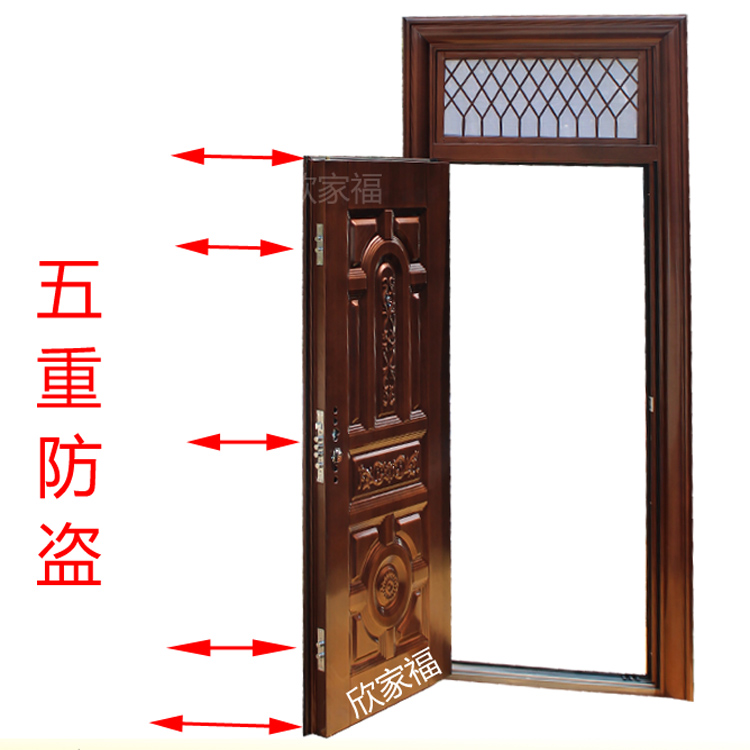 Gas window Security door waist head bright window imitation copper outdoor garage steel steel steel into the door Home security door to the door