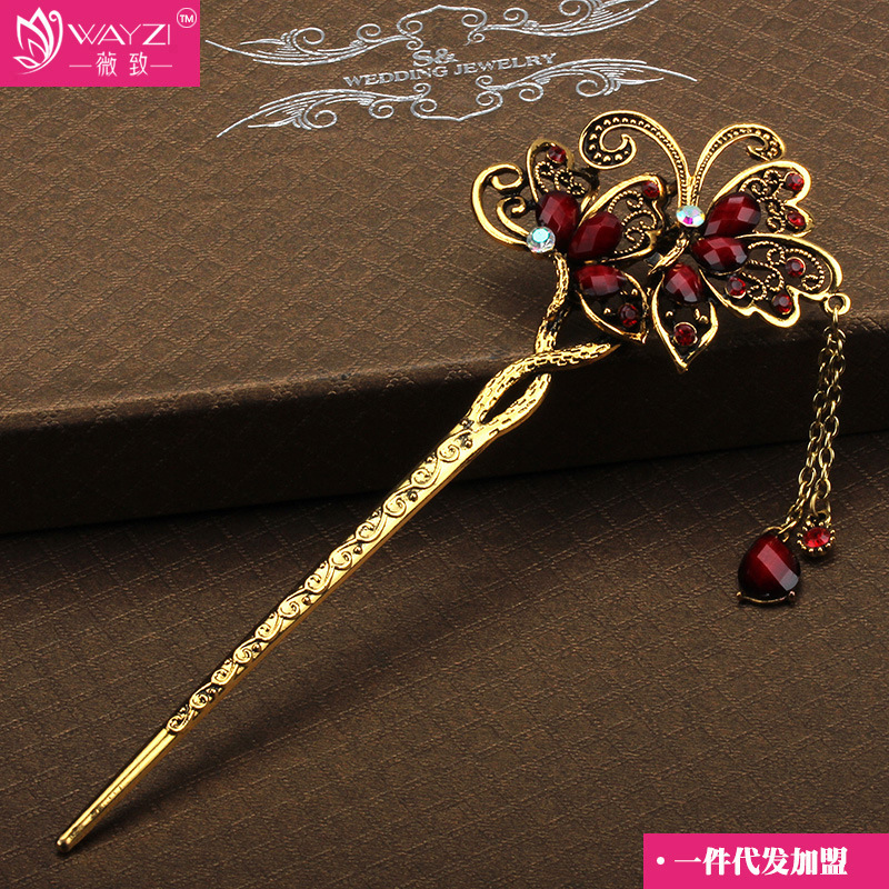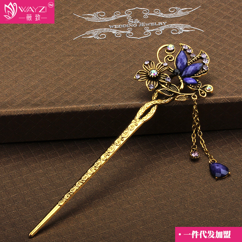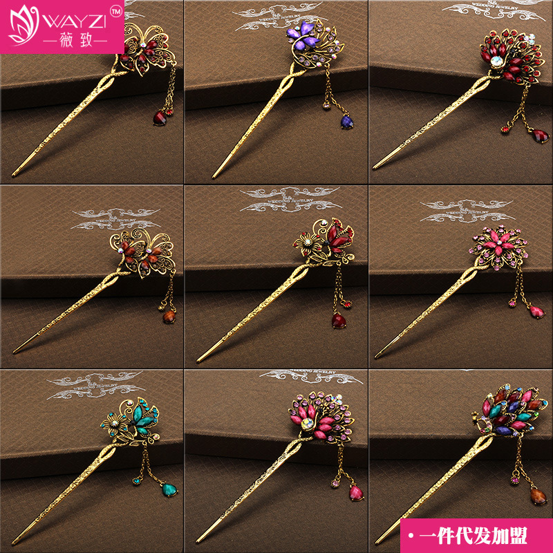 Three Sheng III Peach Blossom Hair Accessories Vintage Retro Hairpin Alloy Head Accessories Disc Hairdresser Ancient Wind Ornaments