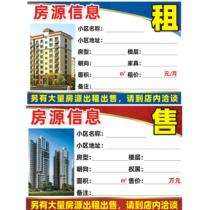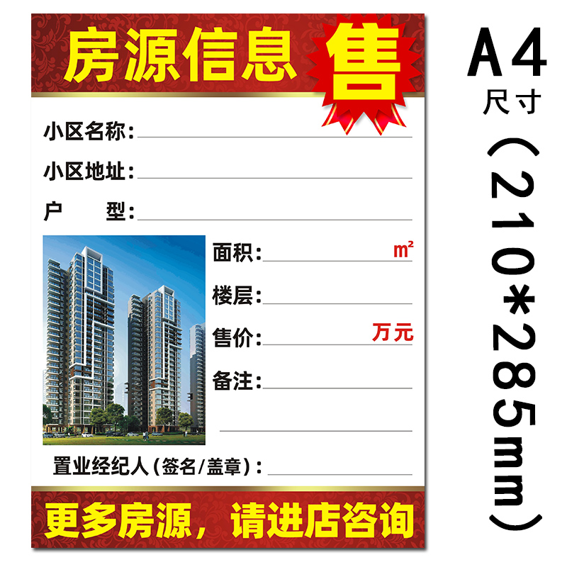 A4 Room Source Information Vertical Edition (Sales) 100 Zhang A4 Room Source Information Vertical Edition (Rent) 100 Zhang A4 Room Source Information Yokoversion (for sale) 100 Zhang A4 Room Source Information Yokoversion (rent)
