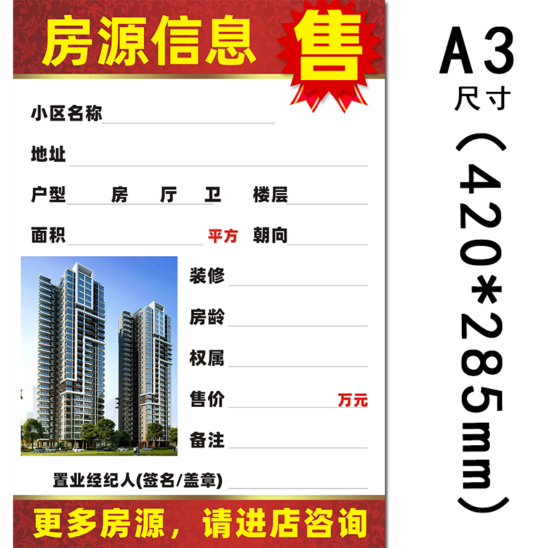 A4A5 Properties Intermediary House Source Information Paper Card House Rent Sale Information Shop Window Display Card Room Source Sticker can be set