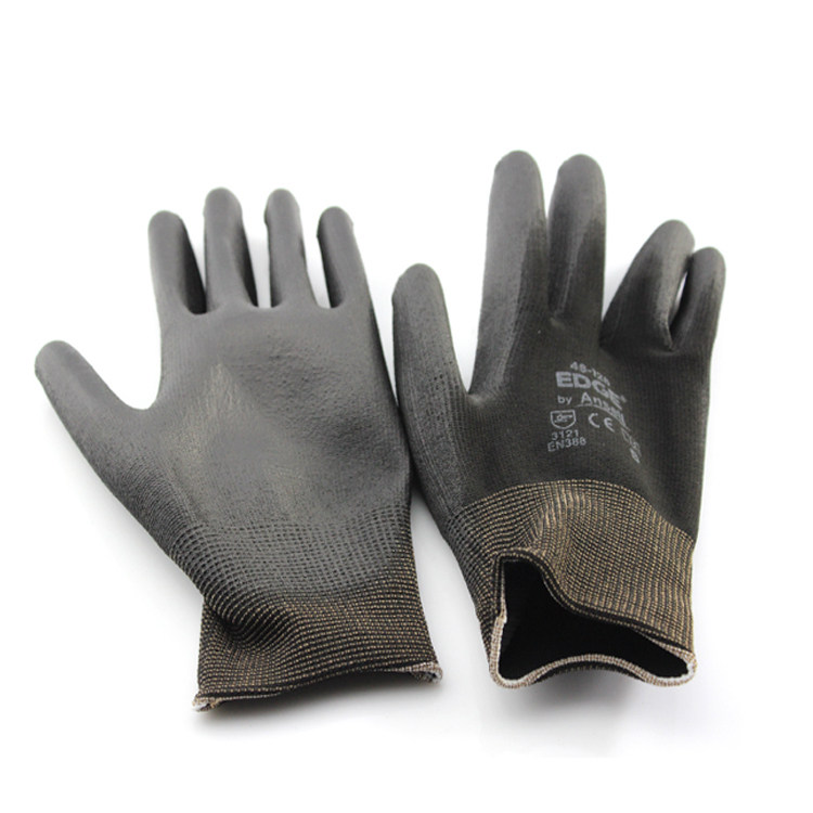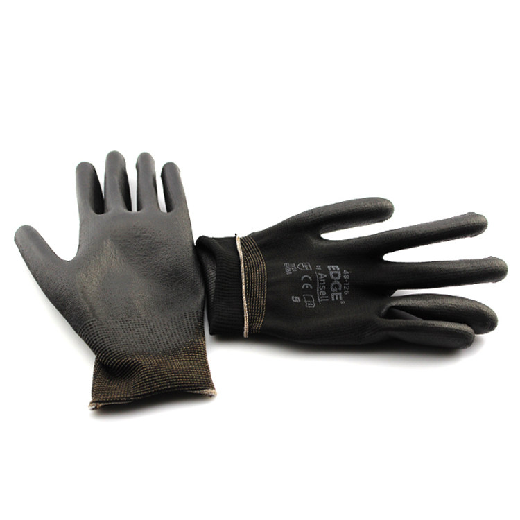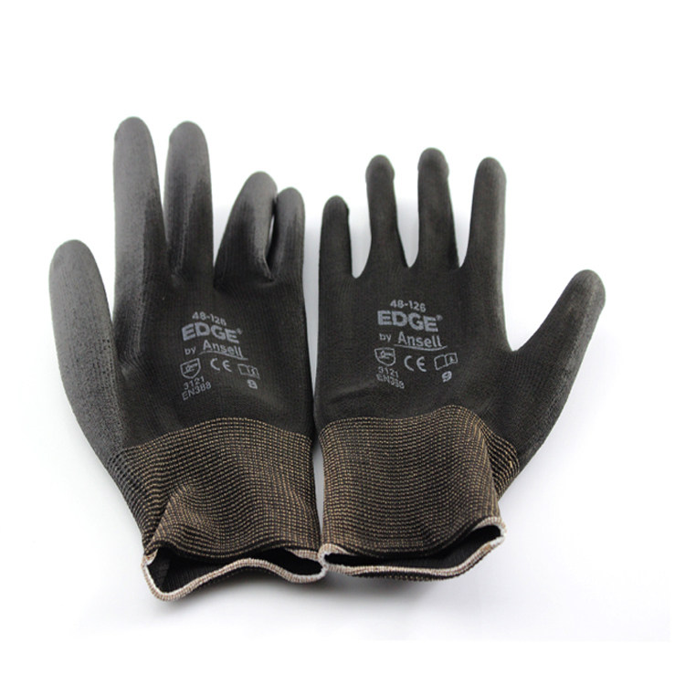ANSELL48-126EdgeSensiliteBlack polyester fiber PU palm coated black universal glove hot pin