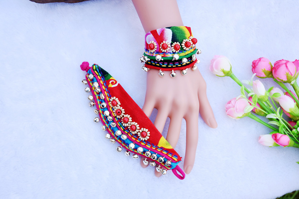 Yunnan Ethnic Cloth Women's Bracelet Performance Performance with Jewelry Original Handmade Beaded Retro Bell Hand